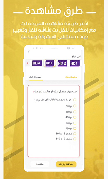 سوف تتمكن من خلال هذه النسخه من الاستمتاع بالبث المباشر وخاصة في قسم القنوات المتميز بالجودات ومصادر المختلفة والتي تبدأ من 160p وحتي 1080p وسوف تستمتع بمشاهدة اكثر من 539 قناة كما تتوفر بة خاصيه (cast to tv) وخاصية ( Dlna ) لنقل البث من الهاتف الي التلفاز للمشاهده العائليه وتحتوي النسخه علي اقسام منها جدول المباريات والاخبار والفيديوا والاحصائيات والمفضلة ودردشة والكثير من المميزات الرائعه التي سوف تبدأ با استكشفها فور تحميلك للتطبيق